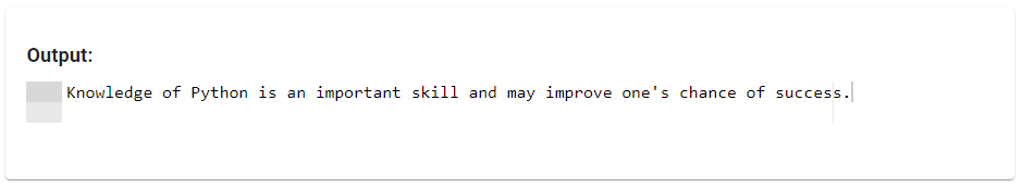 "code": "Knowledge of Python is an important skill and may improve one's chance of success.",
