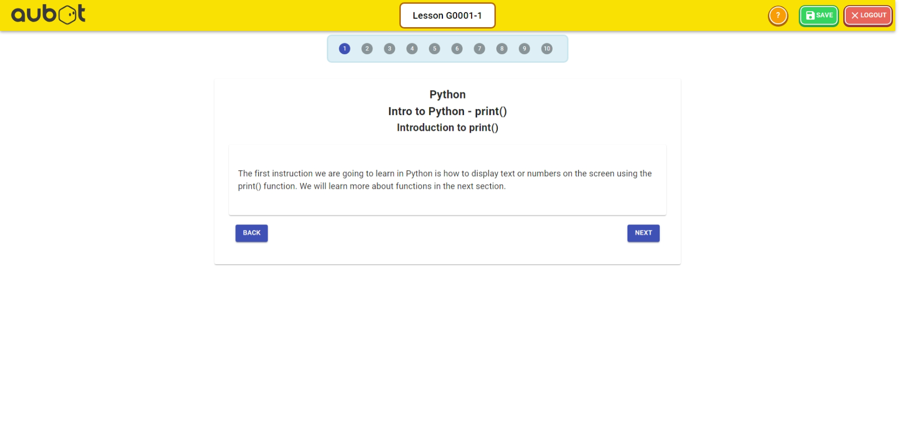 - Endpoint: https://academy.aubot.com/api/lesson/G0001-1